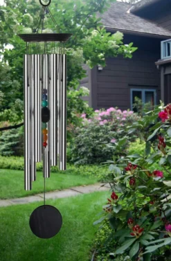 In diesem Klangspiel mit Metall Röhren finden sich die ersten Töne von der weltweit bekannten Hyme Amazing Grace wieder. Die wohltönende Klangfülle der Chimes reicht von religiösen bis hin zu meditativen Stimmungen und in vielen Kulturen werden die Klänge seit Jahrhunderten genutzt um die Transzendenz religiöser oder philosophischer Einkehr zu stimulieren. Das Windspiel gibt es in drei Größen und besteht aus Eschenholz mit Kirsch-Finish und 6 silbernen Metall-Röhren. Durch die Verwendung qualitativ hochwertiger Materialien sind unsere Klangspiele garantiert witterungsbeständig und erhalten eine lebenslange Stimmgarantie.