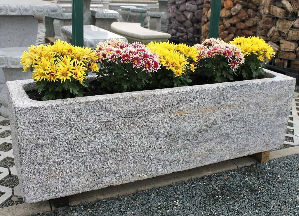 Dieser Naturstein Pflanztrog wird in Handarbeit aus Granit oder Kalkstein gefertigt. Beide Natursteine sind witterungsbeständig und frostfest, so dass der Steintrog ganzjährig im Freien verbleiben kann. Alle sichtbaren Oberflächen wurden gestockt. Um Staunässe zu vermeiden befindet sich im Boden des Troges ein Loch, über welches überflüssiges Wasser abfließen kann. Dank seinem schlichten Design passt sich dieses Pflanzgefäß garantiert in jeden Standort harmonisch in das Gesamtbild ein.