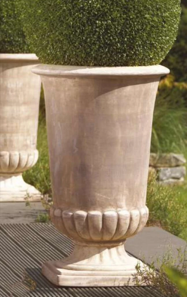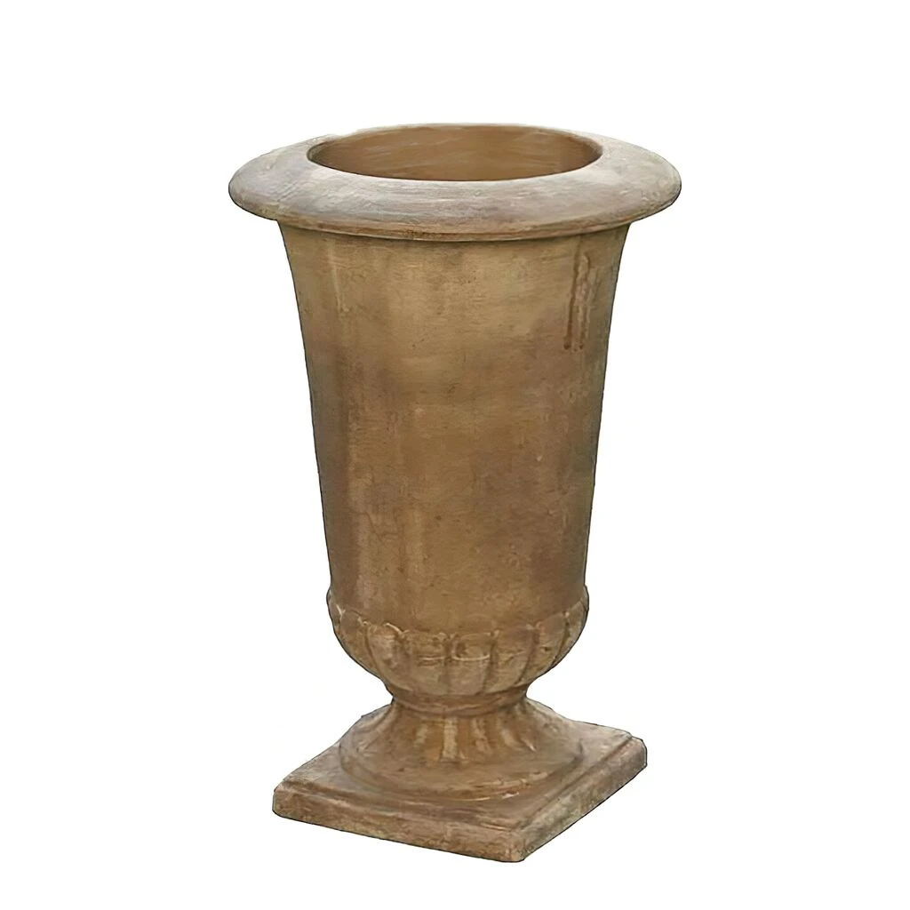 Der Pflanzpokal NEJARA wird aus Terrakotta handgefertigt und besticht mit seiner bräunlichen Antik Optik und dem eckigen Sockel. Das runde, stilvolle Pflanzgefäß ist in zwei verschiedenen Größen erhältlich und wird garantiert ein Blickfang in Ihrem Garten oder auf Ihrer Terrasse.
