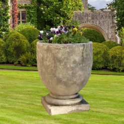 Leichter Pflanzkübel Mit Bewässerungseinsatz Aus Kunststoff – UV-Beständig – Rund – Grau – Jalma